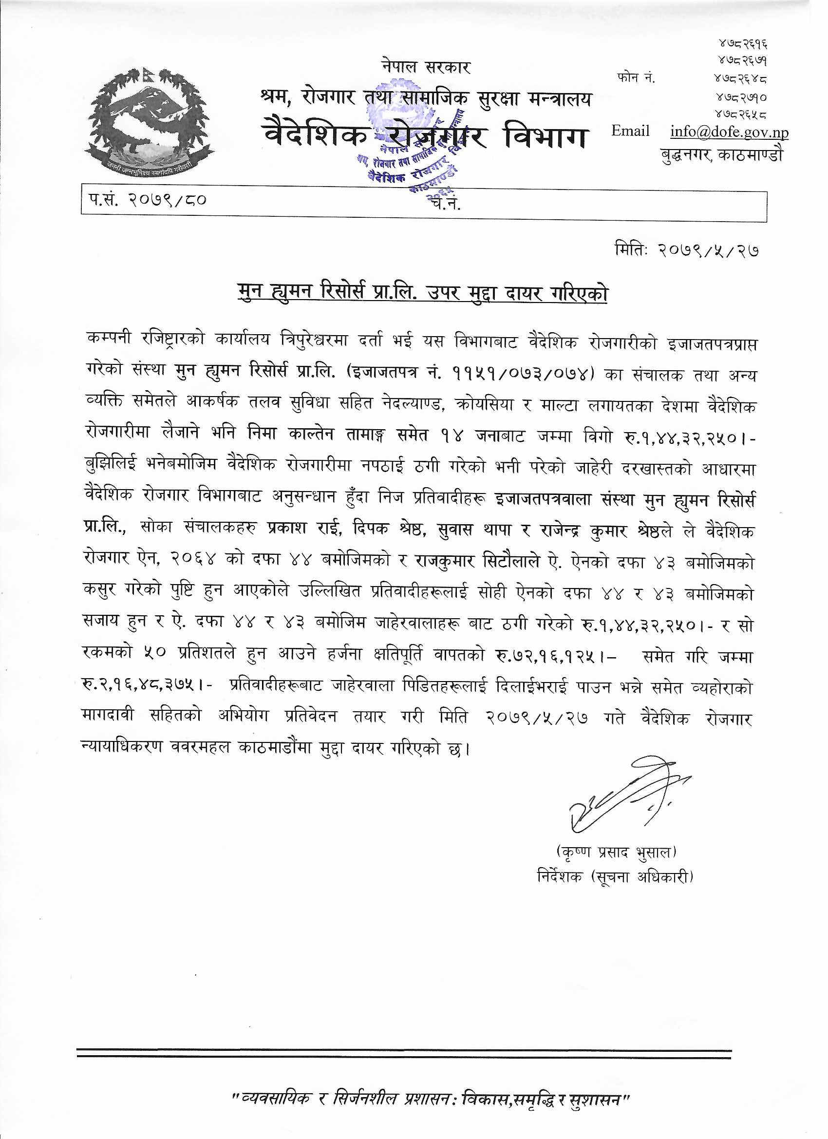 मुन ह्युमन रिसोर्स प्रा . लि. उपर मुद्धा दायर गरिएको